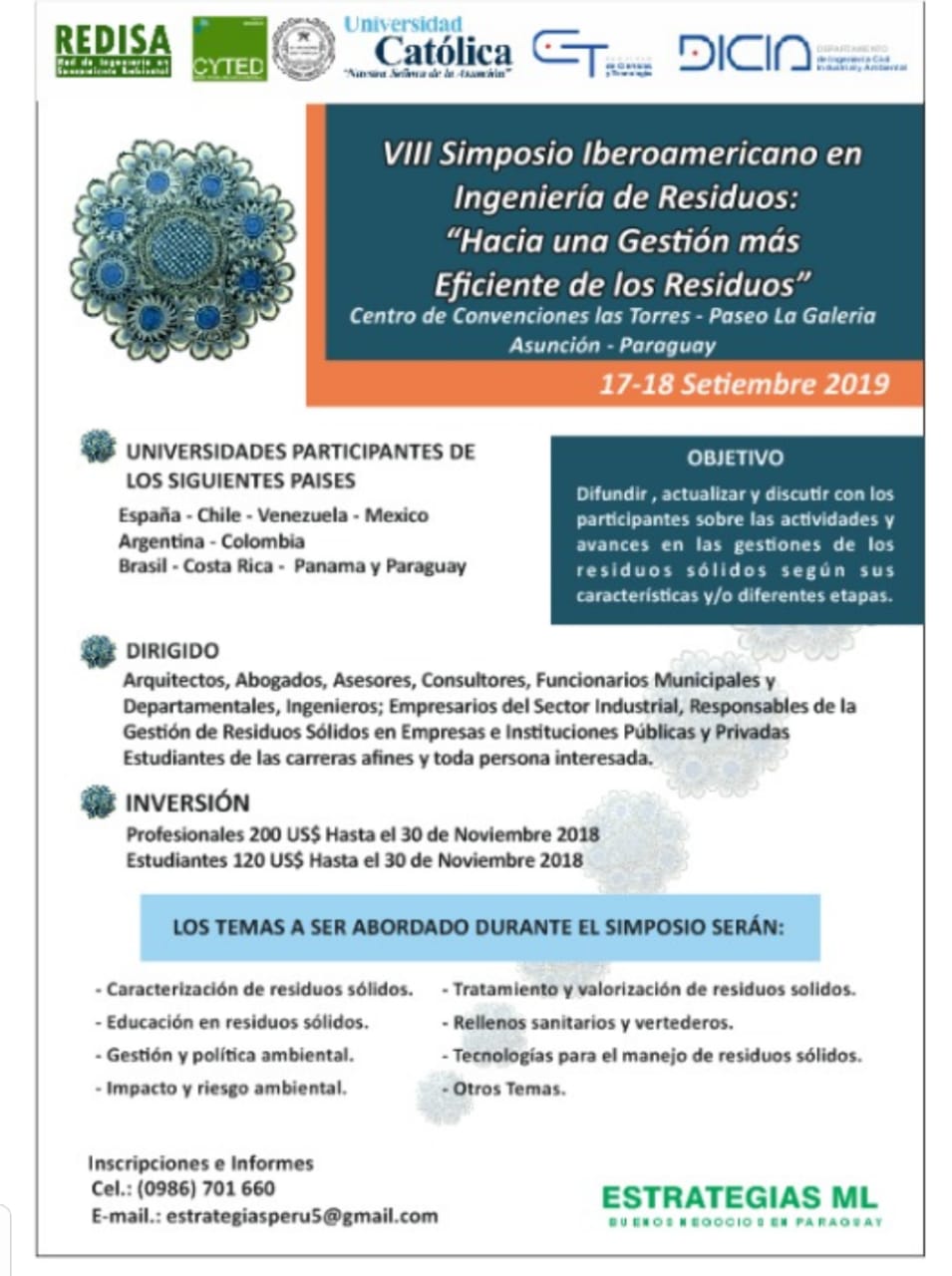 La Universidad Católica Nuestra Señora de la Asunción – UC – con REDISA y el apoyo del CITED, con la logística de la empresa ESTRATEGIAS ML.